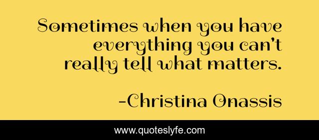 This page presents the quote "Sometimes when you have everything you can't really tell what matters.". Author of this quote is Christina Onassis. .