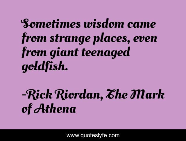 "Rick Riordan, The Mark of Athena Quotes." Quoteslyfe.com, 2025. Sun. 07 Dec. 2025. <https://www.quoteslyfe.com/quote/Sometimes-wisdom-came-from-strange-places-even-12366>.