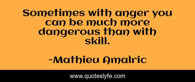 This page presents the quote "Sometimes with anger you can be much more dangerous than with skill.". Author of this quote is Mathieu Amalric. This quote is about skill, sometimes,.
