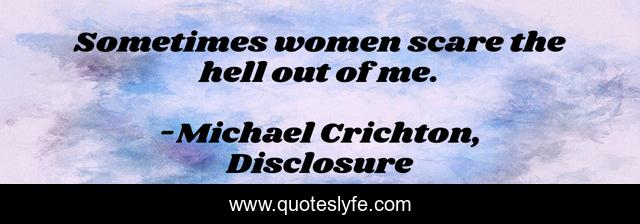 "Michael Crichton, Disclosure Quotes." Quoteslyfe.com, 2025. Sat. 06 Dec. 2025. <https://www.quoteslyfe.com/quote/Sometimes-women-scare-the-hell-out-of-58518>.