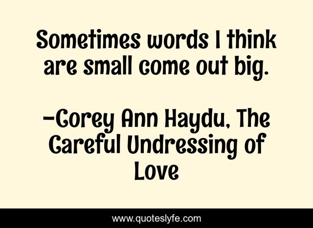 "Corey Ann Haydu, The Careful Undressing of Love Quotes." Quoteslyfe.com, 2025. Fri. 05 Dec. 2025. <https://www.quoteslyfe.com/quote/Sometimes-words-I-think-are-small-come-50810>.