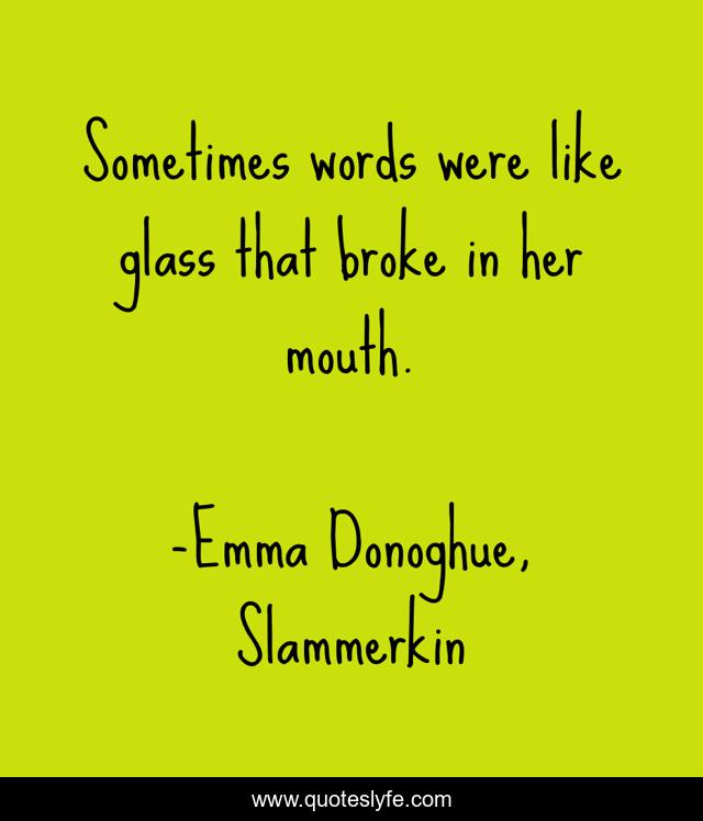 "Emma Donoghue, Slammerkin Quotes." Quoteslyfe.com, 2025. Sat. 06 Dec. 2025. <https://www.quoteslyfe.com/quote/Sometimes-words-were-like-glass-that-broke-75632>.