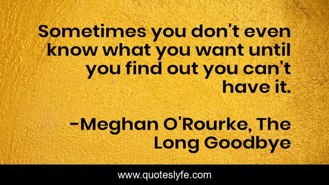 This page presents the quote "Sometimes you don't even know what you want until you find out you can't have it.". Author of this quote is Meghan O'Rourke, The Long Goodbye. This quote is about desire, need,.