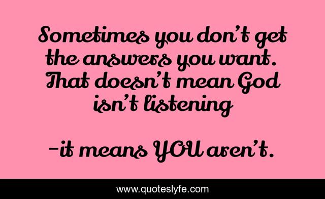 This page presents the quote "Sometimes you don’t get the answers you want. That doesn’t mean God isn’t listening". Author of this quote is it means YOU aren’t.. .