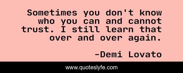 This page presents the quote "Sometimes you don't know who you can and cannot trust. I still learn that over and over again.". Author of this quote is Demi Lovato. .