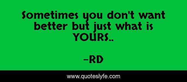 This page presents the quote "Sometimes you don't want better but just what is YOURS..". Author of this quote is RD. .