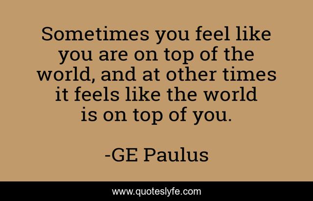 This page presents the quote "Sometimes you feel like you are on top of the world, and at other times it feels like the world is on top of you.". Author of this quote is GE Paulus. This quote is about joy, stress, humanity, inspirational, enthusiasm,.