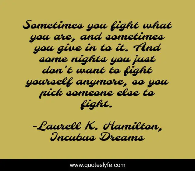 "Laurell K. Hamilton, Incubus Dreams Quotes." Quoteslyfe.com, 2025. Sat. 06 Dec. 2025. <https://www.quoteslyfe.com/quote/Sometimes-you-fight-what-you-are-and-89898>.