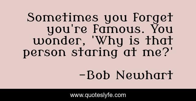 "Bob Newhart Quotes." Quoteslyfe.com, 2025. Sat. 06 Dec. 2025. <https://www.quoteslyfe.com/quote/Sometimes-you-forget-you-re-famous-You-291648>.