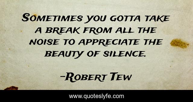 This page presents the quote "Sometimes you gotta take a break from all the noise to appreciate the beauty of silence.". Author of this quote is Robert Tew. This quote is about silence, stress, mind, advice, life,.