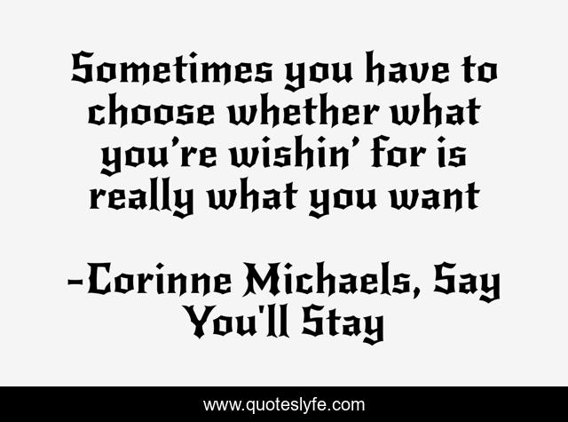 This page presents the quote "Sometimes you have to choose whether what you’re wishin’ for is really what you want". Author of this quote is Corinne Michaels, Say You'll Stay. .