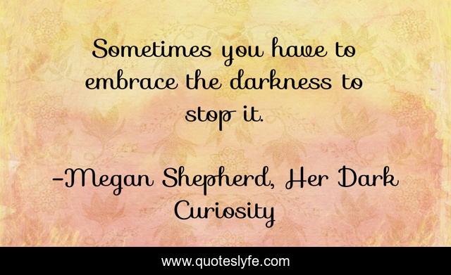 This page presents the quote "Sometimes you have to embrace the darkness to stop it.". Author of this quote is Megan Shepherd, Her Dark Curiosity. This quote is about acceptance, darkness,.