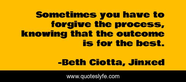 This page presents the quote "Sometimes you have to forgive the process, knowing that the outcome is for the best.". Author of this quote is Beth Ciotta, Jinxed. This quote is about life, love, affection, hurt,.