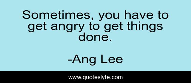 This page presents the quote "Sometimes, you have to get angry to get things done.". Author of this quote is Ang Lee. This quote is about angry, done,.