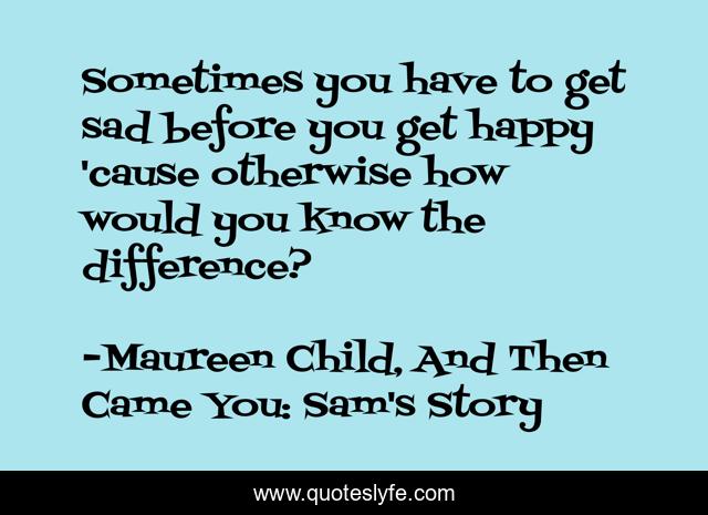 This page presents the quote "Sometimes you have to get sad before you get happy 'cause otherwise how would you know the difference?". Author of this quote is Maureen Child, And Then Came You: Sam's Story. This quote is about sadness, happiness,.