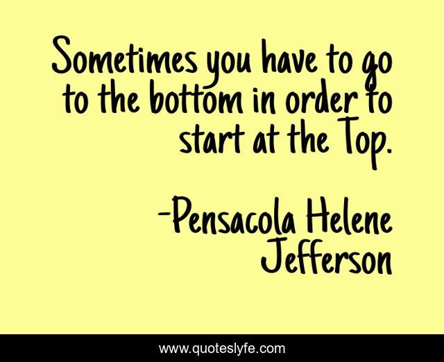 This page presents the quote "Sometimes you have to go to the bottom in order to start at the Top.". Author of this quote is Pensacola Helene Jefferson. This quote is about enthusiasm, wisdom-inspirational, inspirational,.
