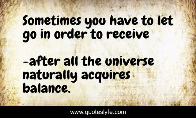 This page presents the quote "Sometimes you have to let go in order to receive". Author of this quote is after all the universe naturally acquires balance.. .