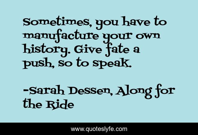 This page presents the quote "Sometimes, you have to manufacture your own history. Give fate a push, so to speak.". Author of this quote is Sarah Dessen, Along for the Ride. This quote is about manufacture, push, fate, history,.