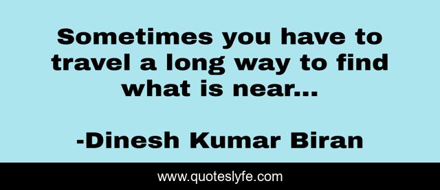 This page presents the quote "Sometimes you have to travel a long way to find what is near...". Author of this quote is Dinesh Kumar Biran. This quote is about longing, search, travel, soulmate, find, friend,.