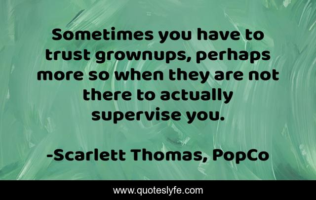 This page presents the quote "Sometimes you have to trust grownups, perhaps more so when they are not there to actually supervise you.". Author of this quote is Scarlett Thomas, PopCo. .