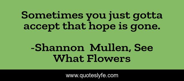 This page presents the quote "Sometimes you just gotta accept that hope is gone.". Author of this quote is Shannon Mullen, See What Flowers. This quote is about acceptance, life-lessons, acceptance-of-others,.