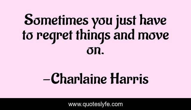 This page presents the quote "Sometimes you just have to regret things and move on.". Author of this quote is Charlaine Harris. This quote is about acceptance, forgiveness, sookie-stackhouse,.