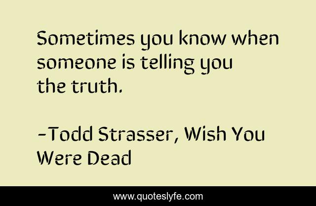 This page presents the quote "Sometimes you know when someone is telling you the truth.". Author of this quote is Todd Strasser, Wish You Were Dead. This quote is about madison, someone, truth,.