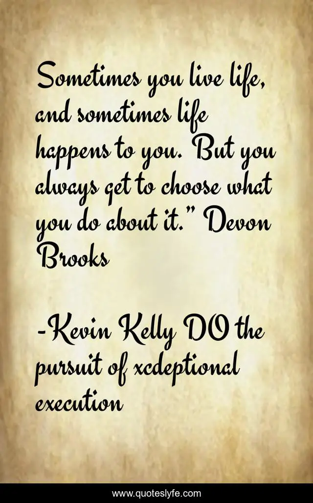 This page presents the quote "Sometimes you live life, and sometimes life happens to you. But you always get to choose what you do about it.” Devon Brooks". Author of this quote is Kevin Kelly DO the pursuit of xcdeptional execution. This quote is about startups, leadership, kevin-kelly, motivation, entrepreneurship,.