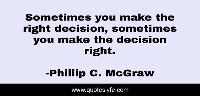 This page presents the quote "Sometimes you make the right decision, sometimes you make the decision right.". Author of this quote is Phillip C. McGraw. This quote is about decision, right, make, sometimes,.