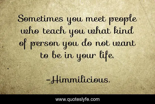 This page presents the quote "Sometimes you meet people who teach you what kind of person you do not want to be in your life.". Author of this quote is Himmilicious. This quote is about experience, people,.
