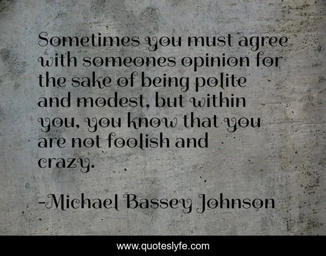"Michael Bassey Johnson Quotes." Quoteslyfe.com, 2025. Tue. 09 Dec. 2025. <https://www.quoteslyfe.com/quote/Sometimes-you-must-agree-with-someones-opinion-179852>.