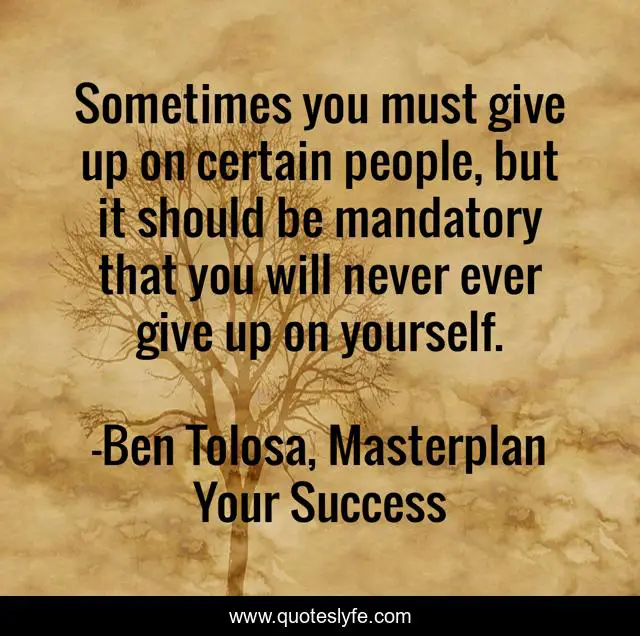 "Ben Tolosa, Masterplan Your Success Quotes." Quoteslyfe.com, 2025. Fri. 05 Dec. 2025. <https://www.quoteslyfe.com/quote/Sometimes-you-must-give-up-on-certain-236504>.