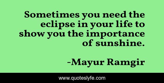 This page presents the quote "Sometimes you need the eclipse in your life to show you the importance of sunshine.". Author of this quote is Mayur Ramgir. This quote is about positive-outlook, positive-thinking,.