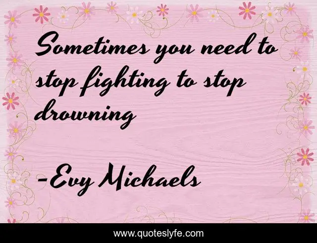 This page presents the quote "Sometimes you need to stop fighting to stop drowning". Author of this quote is Evy Michaels. This quote is about drowning, strength, fighting, despair, hope, depression,.