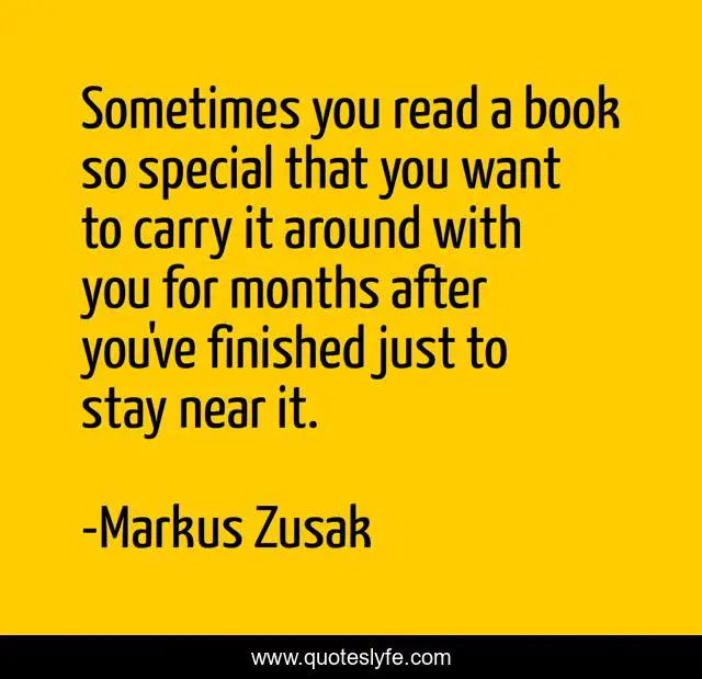 This page presents the quote "Sometimes you read a book so special that you want to carry it around with you for months after you've finished just to stay near it.". Author of this quote is Markus Zusak. .