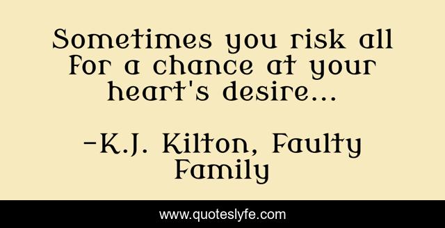 This page presents the quote "Sometimes you risk all for a chance at your heart's desire...". Author of this quote is K.J. Kilton, Faulty Family. .