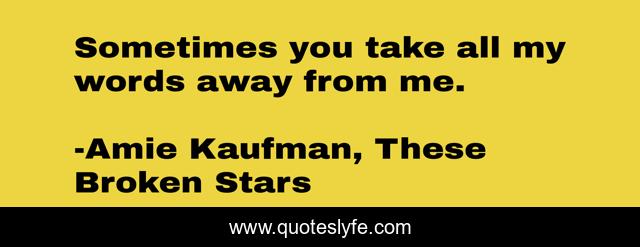 "Amie Kaufman, These Broken Stars Quotes." Quoteslyfe.com, 2025. Sat. 06 Dec. 2025. <https://www.quoteslyfe.com/quote/Sometimes-you-take-all-my-words-away-112578>.
