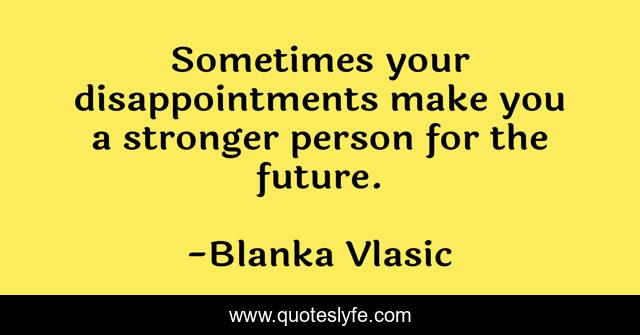 This page presents the quote "Sometimes your disappointments make you a stronger person for the future.". Author of this quote is Blanka Vlasic. This quote is about future, stronger,.