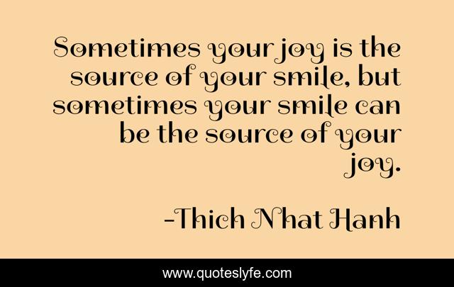 This page presents the quote "Sometimes your joy is the source of your smile, but sometimes your smile can be the source of your joy.". Author of this quote is Thich Nhat Hanh. This quote is about joy, happiness, smile,.