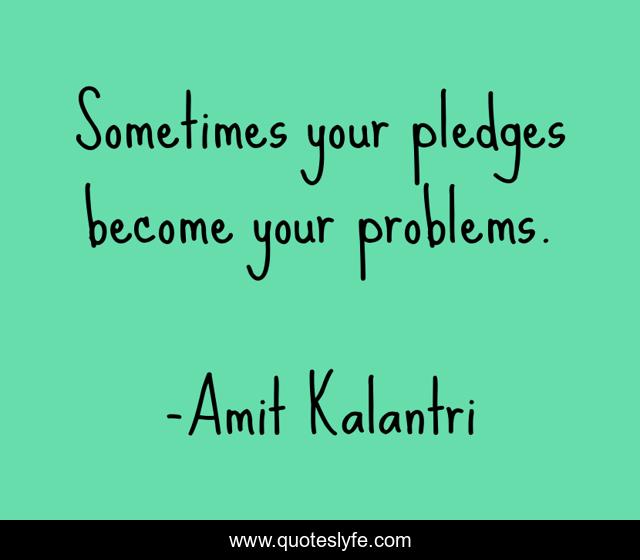 "Amit Kalantri Quotes." Quoteslyfe.com, 2025. Mon. 08 Dec. 2025. <https://www.quoteslyfe.com/quote/Sometimes-your-pledges-become-your-problems-84327>.
