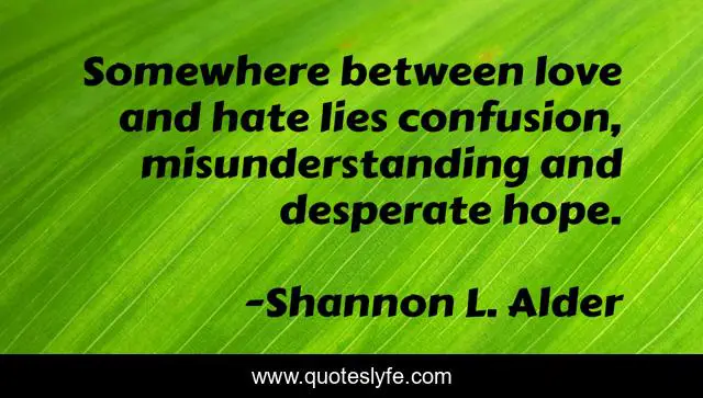 "Shannon L. Alder Quotes." Quoteslyfe.com, 2025. Mon. 08 Dec. 2025. <https://www.quoteslyfe.com/quote/Somewhere-between-love-and-hate-lies-confusion-35013>.