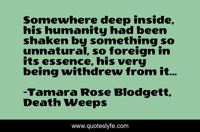 "Tamara Rose Blodgett, Death Weeps Quotes." Quoteslyfe.com, 2025. Mon. 08 Dec. 2025. <https://www.quoteslyfe.com/quote/Somewhere-deep-inside-his-humanity-had-been-250983>.