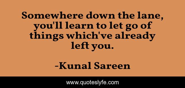 This page presents the quote "Somewhere down the lane, you'll learn to let go of things which've already left you.". Author of this quote is Kunal Sareen. .