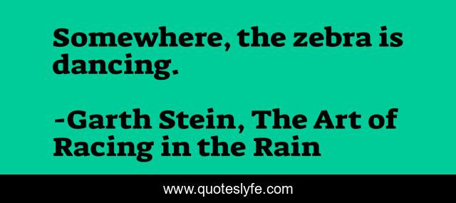 "Garth Stein, The Art of Racing in the Rain Quotes." Quoteslyfe.com, 2025. Fri. 05 Dec. 2025. <https://www.quoteslyfe.com/quote/Somewhere-the-zebra-is-dancing-6842>.