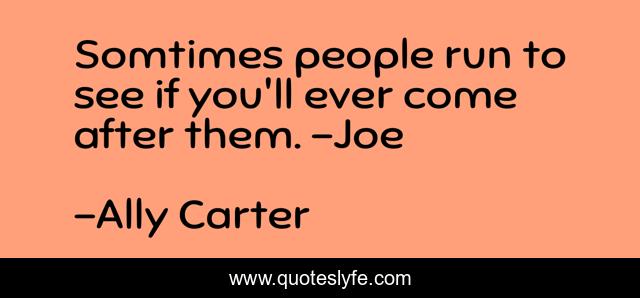 This page presents the quote "Somtimes people run to see if you'll ever come after them. -Joe". Author of this quote is Ally Carter. .