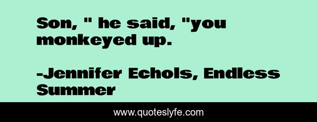 This page presents the quote "Son, " he said, "you monkeyed up.". Author of this quote is Jennifer Echols, Endless Summer. This quote is about summer, romantic, endless-summer, echols, jennifer, mcgillicuddy, jennifer-echols, boys-next-door, adam,.