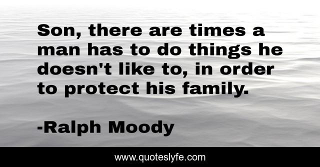 This page presents the quote "Son, there are times a man has to do things he doesn't like to, in order to protect his family.". Author of this quote is Ralph Moody. This quote is about responsibility, family, fatherhood,.