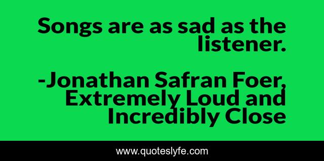 "Jonathan Safran Foer, Extremely Loud and Incredibly Close Quotes." Quoteslyfe.com, 2025. Fri. 05 Dec. 2025. <https://www.quoteslyfe.com/quote/Songs-are-as-sad-as-the-listener-78556>.