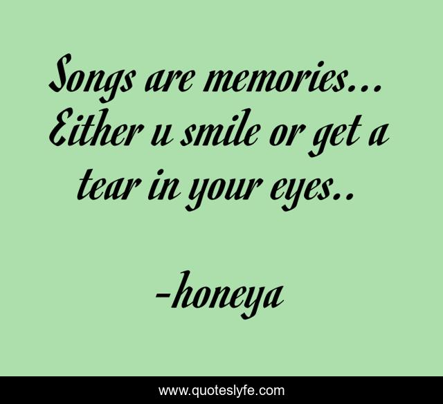 "honeya Quotes." Quoteslyfe.com, 2025. Mon. 08 Dec. 2025. <https://www.quoteslyfe.com/quote/Songs-are-memories-Either-u-smile-or-164548>.