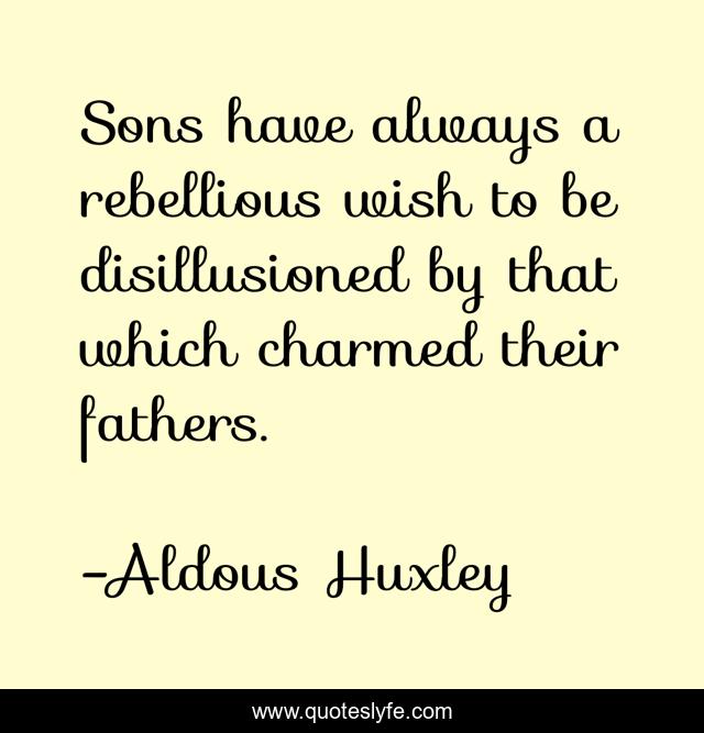This page presents the quote "Sons have always a rebellious wish to be disillusioned by that which charmed their fathers.". Author of this quote is Aldous Huxley. This quote is about wish, rebellious, always,.